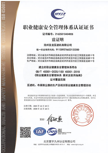職業(yè)健康安全管理體系認(rèn)證證書