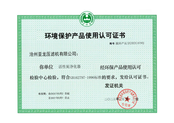 環(huán)境保護(hù)產(chǎn)品使用認(rèn)可證書-